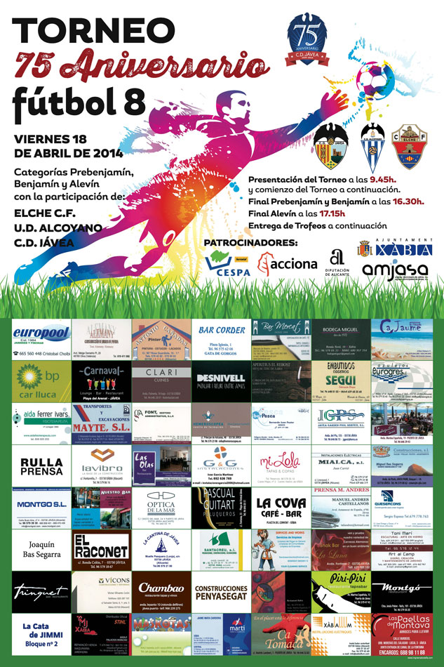 El próximo 18 de abril, Viernes Santo, siguiendo con los actos del 75 Aniversario del CD Jávea, el Club ha organizado un torneo para los equipos más pequeños: Prebenjamín, Benjamín y Alevín.